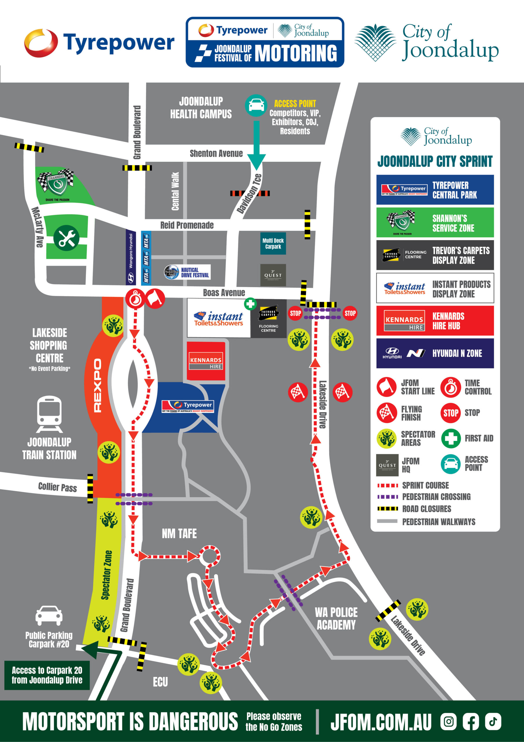 However, this year vehicle access to residences and businesses within the event footprint will be maintained and accessed via Shenton Avenue. Although these roads will be closed to the public, residents and businesses will have access to their premises, just follow the instructions of our officials and be aware of the temporary signage.